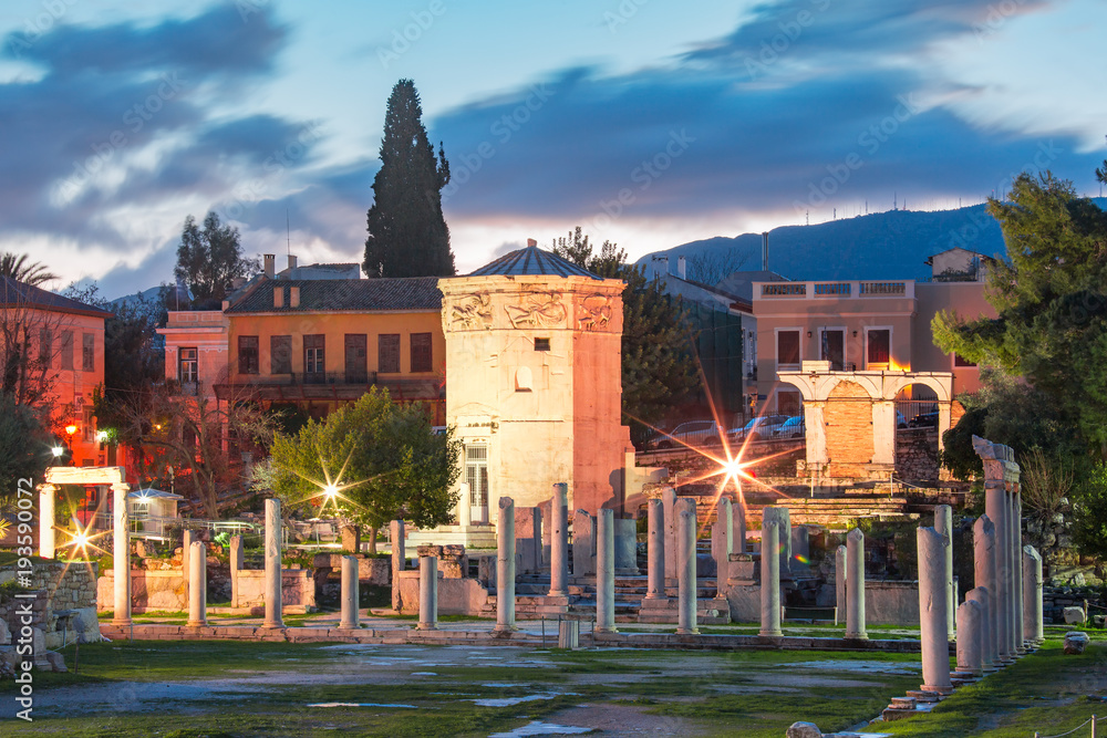 The Tower of the Winds, the world's first meteorological station, an octagonal marble clocktower in the Roman Agora, Athens, Greece