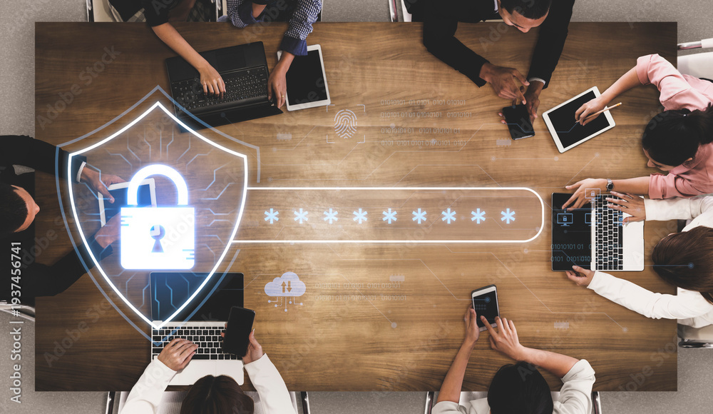A concept of advanced network security. This system combines password protection with biometric fingerprint authentication and cloud data verification for secure access. Fermion