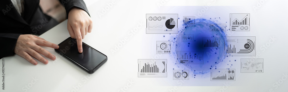 Real-time global data analytics dashboard visualizing insights from interconnected systems for decision-making, business analytics, and digital transformation Latch