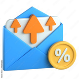 A 3D blue envelope with upward arrows and a percentage coin symbolizing email performance and success metrics