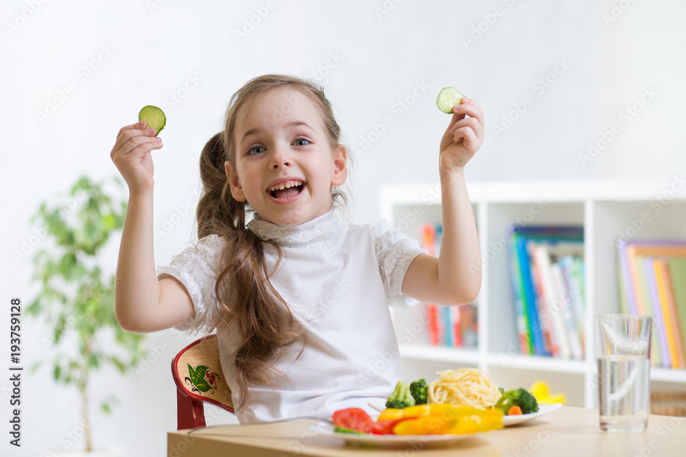 kid eating healthy food in kindergarten or at home
