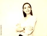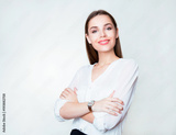 beautiful young woman with long brown hair wearing wrist watch