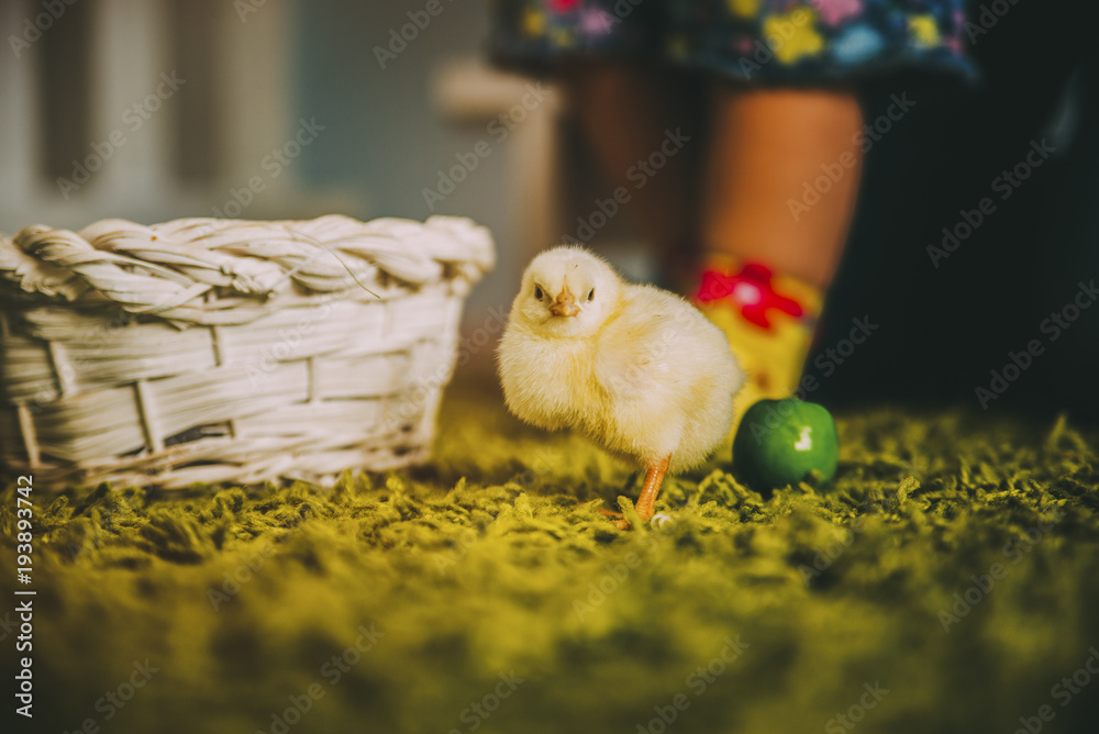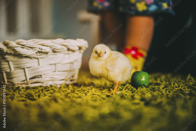 Chicken on the carpet grass