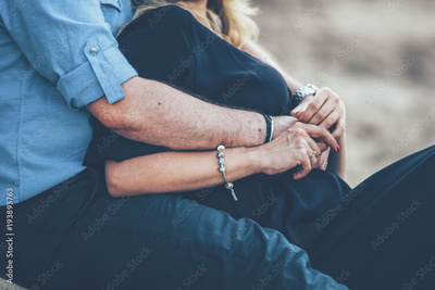 couple is hugging and sitting close hands