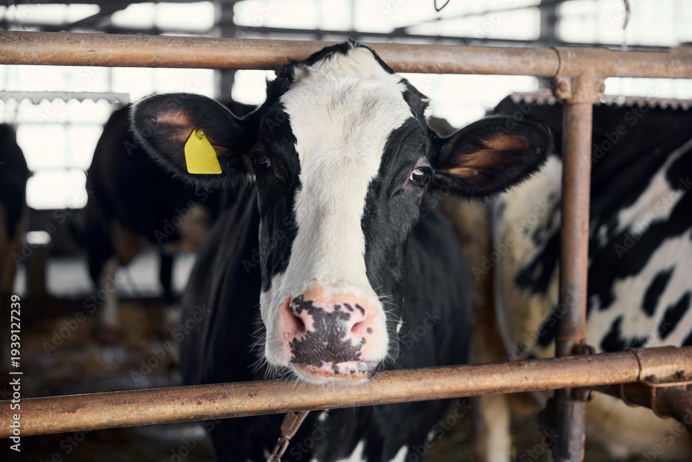 北海道の酪農牧場の牛舎で飼育されているホルスタインの乳牛 Holstein dairy cows in a barn on a dairy farm in Hokkaido, Japan