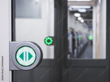 Automatic Gate with green arrow sign in Train Transportation Travel concept