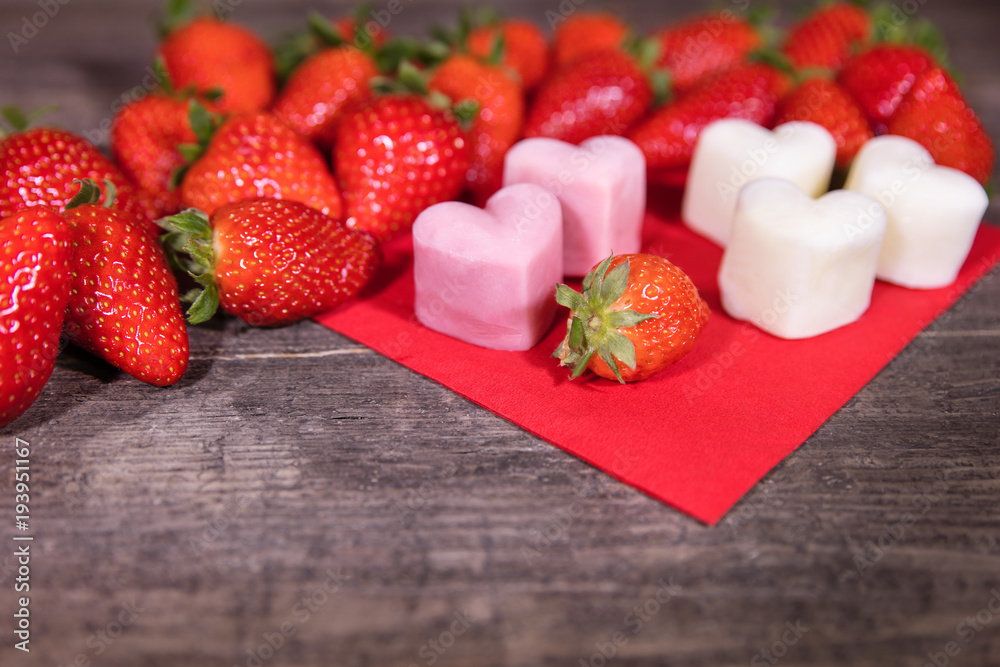 Frozen Joghurt in Herzform, Erdbeeren und Froyo Bites
