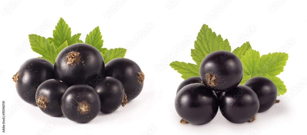Set of blackcurrant isolated on white. Ripe and tasty black berry with copy space for text. Currant on a white background.