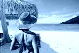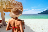 Young woman traveler relaxing and enjoying the beautiful tropical white sand beach