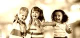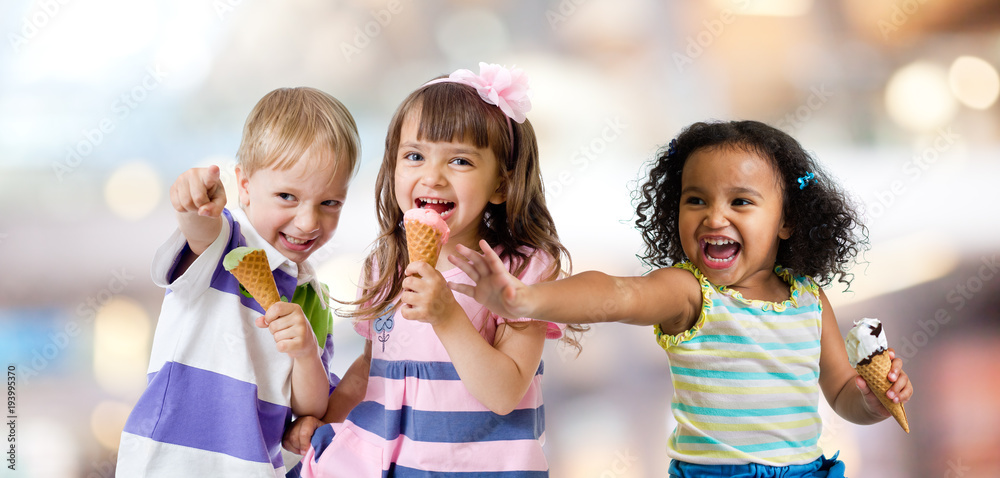 happy kids group eating ice cream at a party