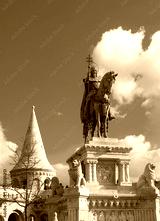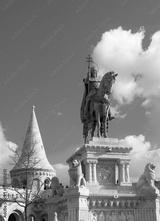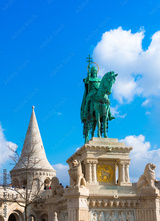 King Saint Stephen statue and fishermen towers at Matthias Church, Budapest, Hungary