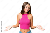 Teenager caucasian girl over isolated background happy and smiling
