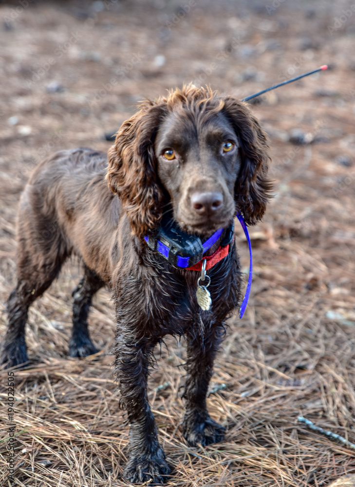 Hunting dogs outdoors playing
