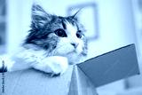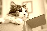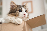 Fluffy cat in cardboard box at home