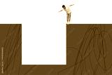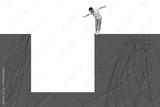 Composite trend artwork sketch image photo collage of caricature young guy stand balance edge cliff abyss spread hands look down deep trap