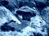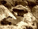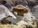 A bizarre mushroom shaped stone hoodoo in the De-Na-Zin Wilderness of northwestern New Mexico, formed by the hard cap rock resisting erosion. Similar to the desert landscape of nearby Bisti Badlands.