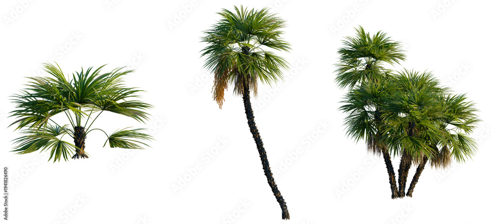 Acoelorrhaphe wrightii tree, elevation, front view, cutout, transparent background, isolate, Majestic palm tree silhouette on a clear sky, perfect for tropical design elements.