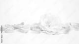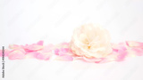 White and pink rose flower on a white background, soft focus.