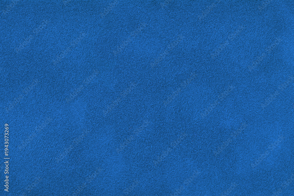 Dark blue suede fabric background with matte nap velvet texture. Royal blue tones and soft felt textile surface in macro