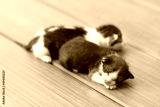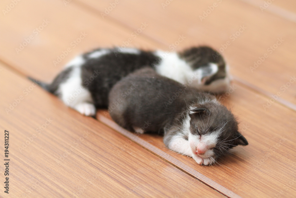 Kittens sleeping on brown wooden floor