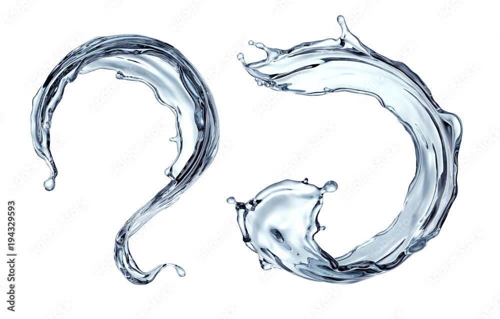 3d render, clean and clear water splash, wave, pure liquid clip art, isolated on white background