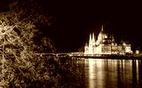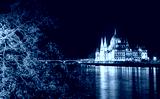 Night view of illuminated Budapest with Danube river, parliament, palace and bridge, Hungary.