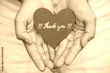 Young woman hand holding red heart paper with THANK YOU message. Thankful concept.