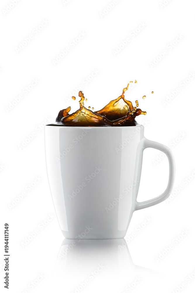 Coffee Pour Splash on Coffee Cup. Capture using High Speed Photography With Coffee Shop Scene