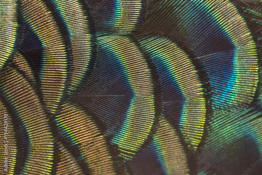 Closeup peacock feathers (Indian peafowl)