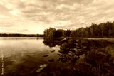 Beautiful view of lake and rocks in Liesjarvi National park at summer. Finland