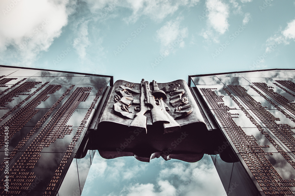 St. George ribbon in honor of Victory Day 1945 near the eternal flame