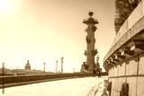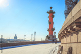 Panorama of the Spit of the Vasilyevsky Island in St. Petersburg on a winter sunny day