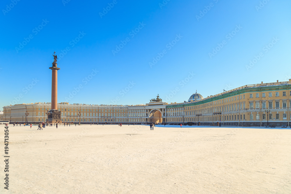 panorama of the Palace Square in St. Petersburg in winter