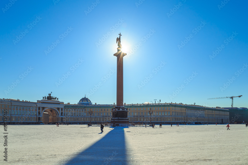 panorama of the Palace Square in St. Petersburg in winter day