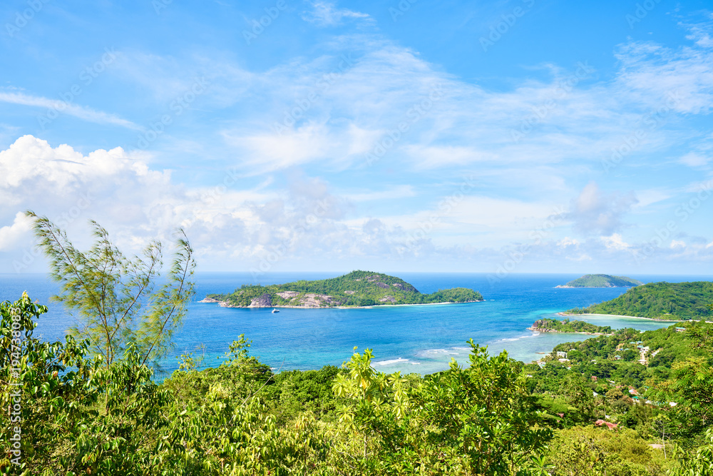 View on Therese island from sans soucis road (panoramic point of view), Seychelles, Mahe Island