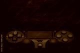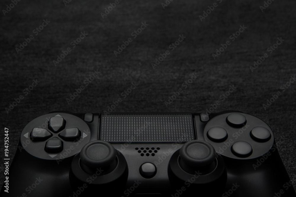 Black gamepad on a dark wooden background