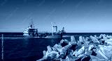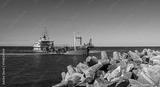 Dredger on duty on baltic sea in Poland