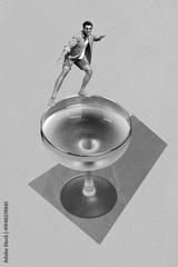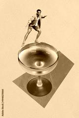 Composite sketch design artwork 3D photo collage of young man dance smile glass rink cocktail cheerful party carefree amazed holiday