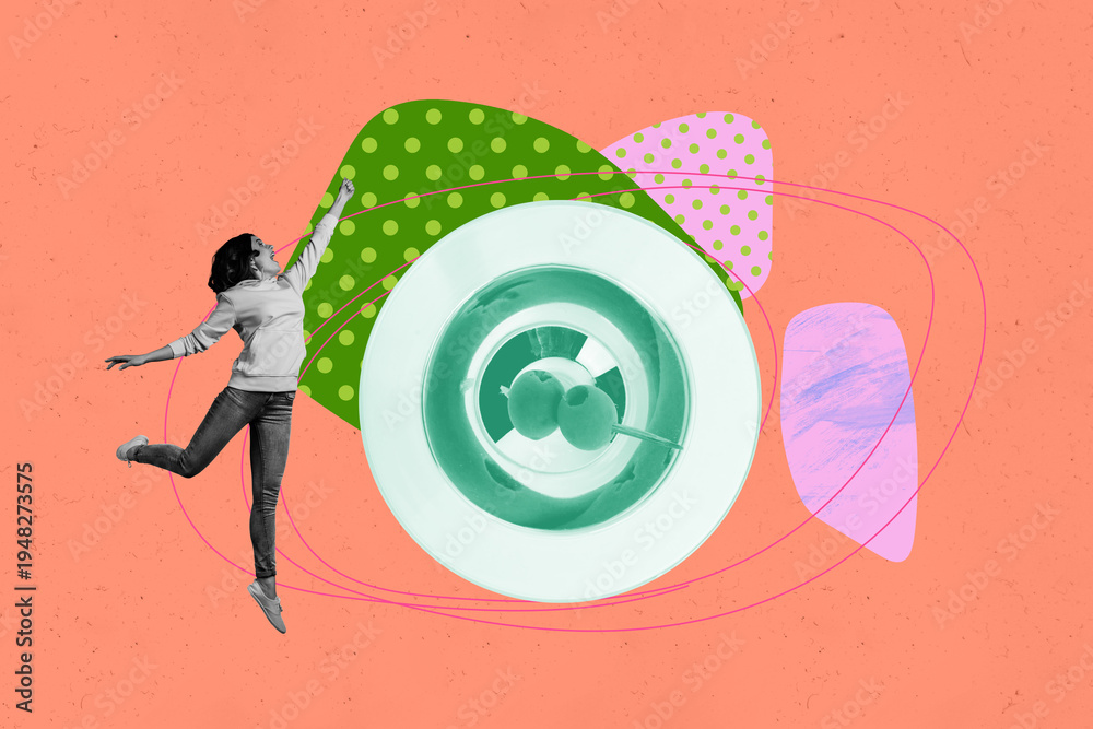 Banner full photo trend image collage of happy pretty girl dance martini glass gin beverage celebration disco entertainment