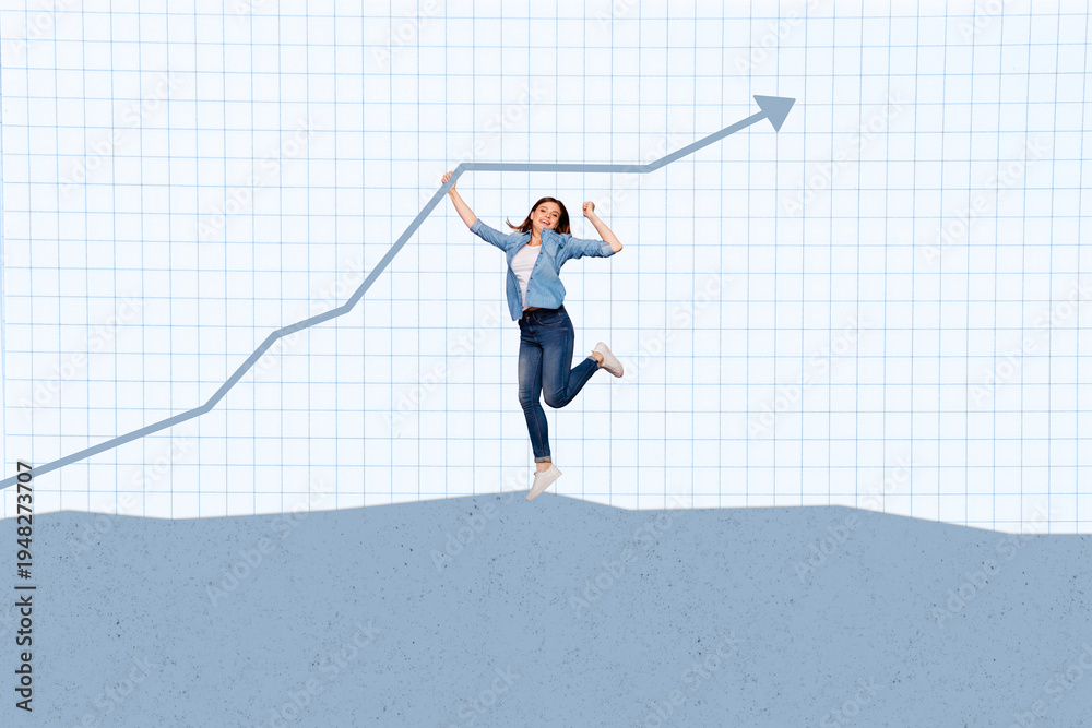 Image pop 3d zine full collage of happy businessman businesswoman stand arrow development career chance promotion employee