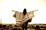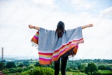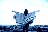 Joyful woman embracing nature outdoors.