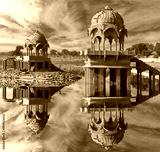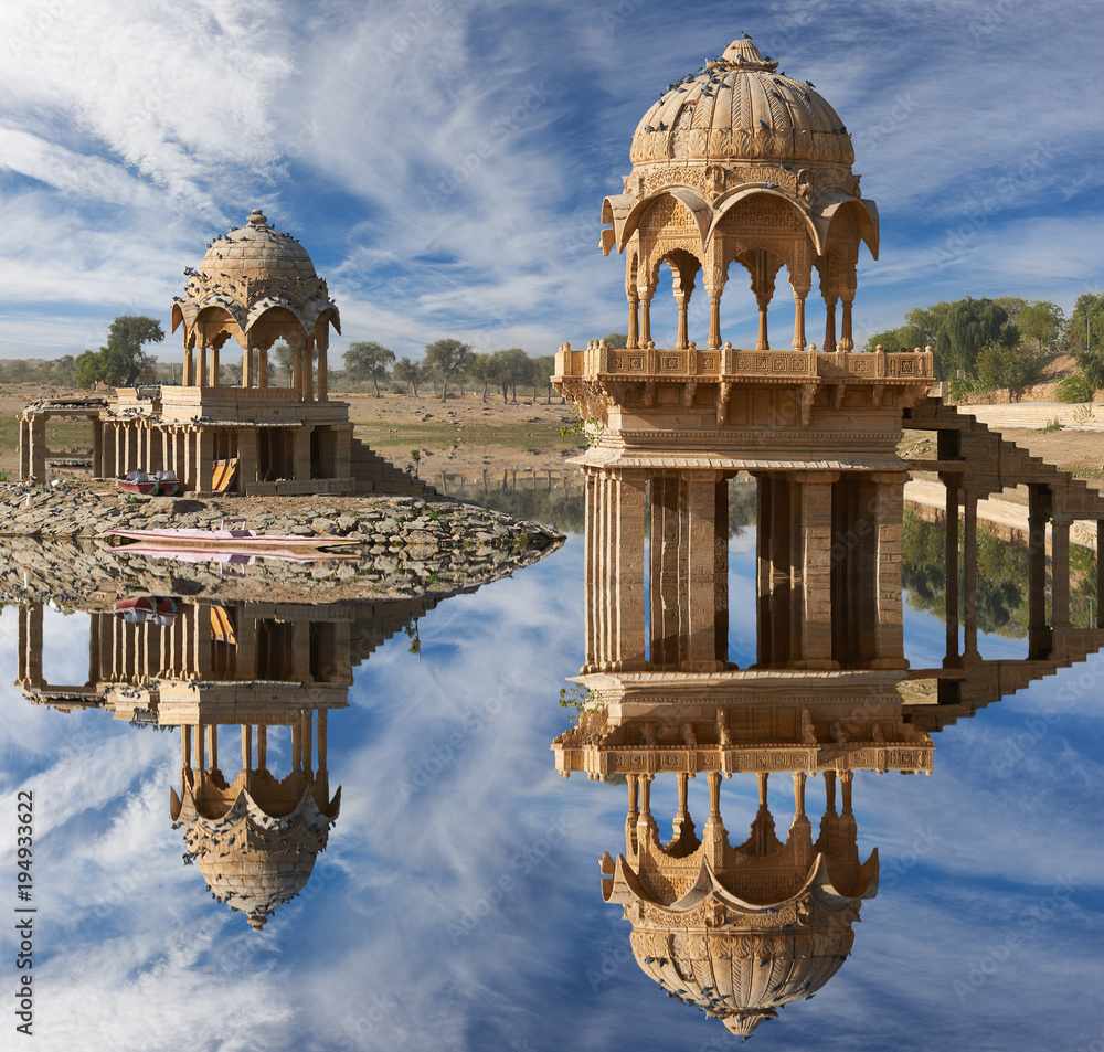 Gadi Sagar temple on Gadisar lake Jaisalmer, India.
