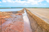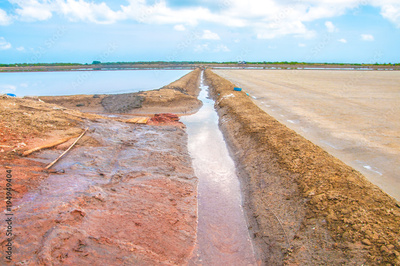 Salt evaporation ponds, also called salterns or salt pans located at Phetchaburi, Thailand