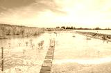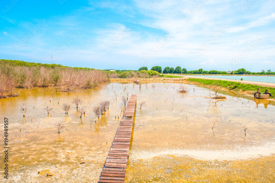 beautiful dry lake side view with blue sky and cloud at Phetchaburi, Thailand