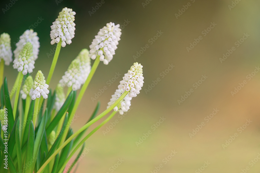 A serene and cinematic close-up of white flowers in a natural setting with green leaves and a blurred background.