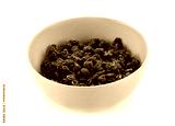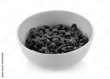 Raisins on a white background.