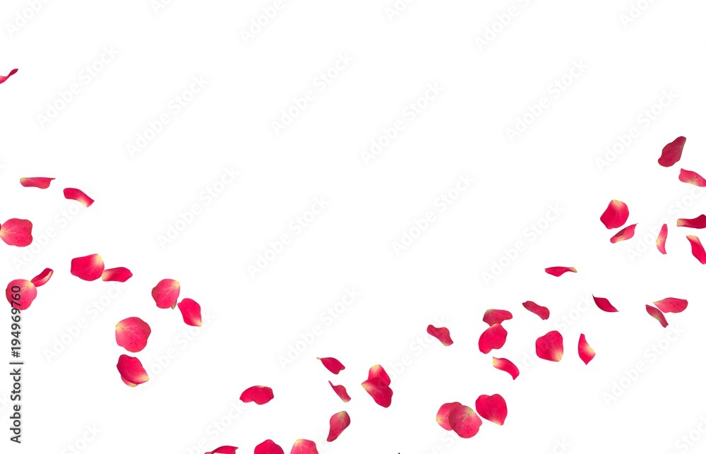 Red rose petals fly in a circle. The center free space for Your photos or text