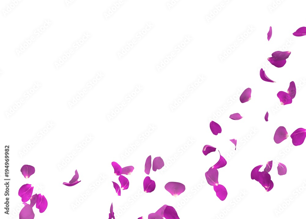 Purple rose petals flying. The center free space for Your photos or text