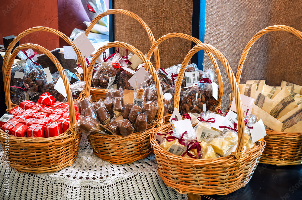 baskets with sweets and candies