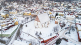 Aerial view of beautiful city Porvoo at winter. Finland.